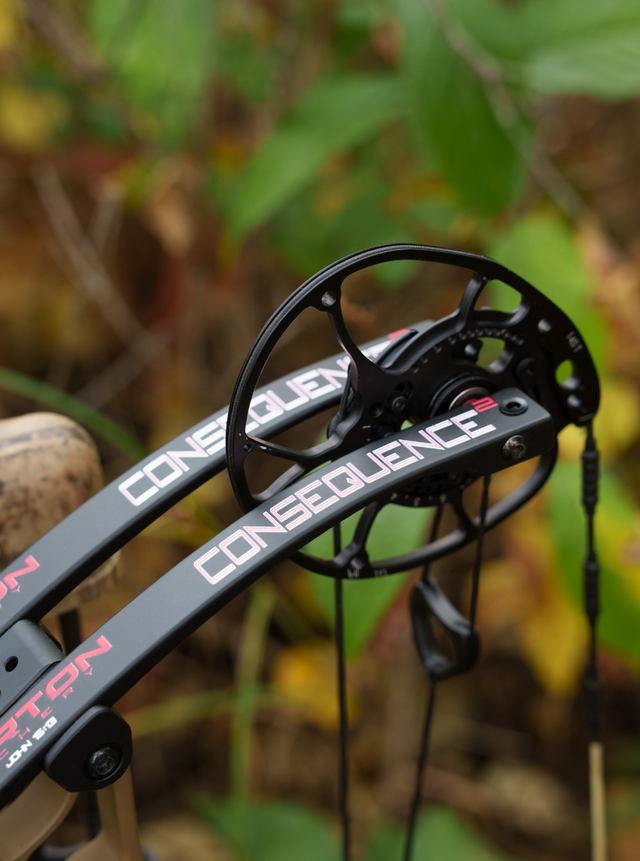 Constructed with a brand-new riser design and made from forged aluminum, the Consequence 2 is not only robust but also lightweight. It features BBS Dual Sync Cams, 1/4" Axles, and .870 Limbs and Limb Pockets for enhanced stability. The Darton Grip ensures a comfortable and firm hold, while the QAD Integrate Mount and Roller Guard add to its superior design.