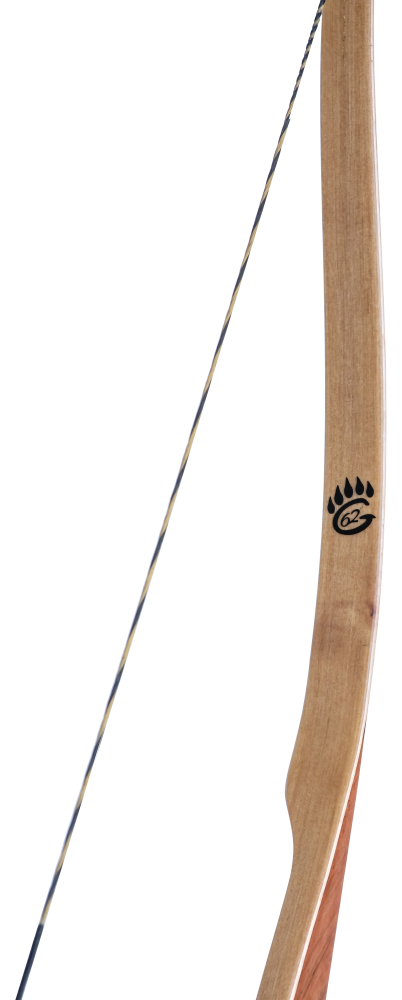The G62 is inspired by the classic 62” Grizzly from the late 50’s and early 60’s. The riser features I-Beam construction, with Chechen (Caribbean Rosewood) for the I-Beam and Jatoba (Brazilian Cherry) for the outer pieces. The limb core on the Bear G62 is made from hard rock maple, pressed between two layers of clear fiberglass. The tips are crafted with black fiberglass, allowing use of all string materials, including fast flight. A black cap on the back of the riser adds strength and ties the tips and riser together for a sleek, unified look. This is Bear Archery’s first 62” one-piece recurve in decades, and its smooth, accurate shooting performance will not disappoint.