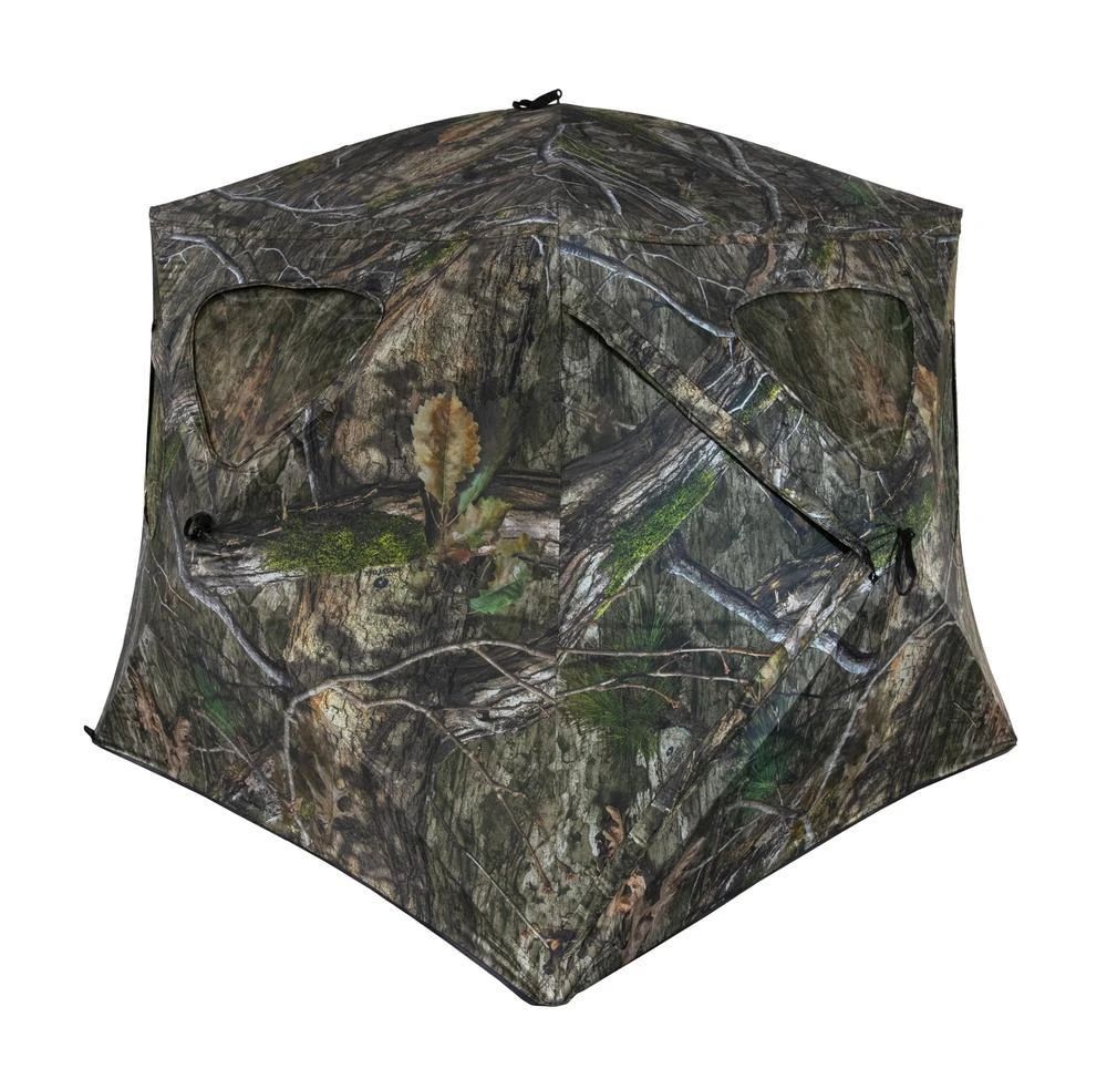 The Silent Brickhouse™ Wide-Bottom Hub Blind now boasts an updated, wide-bottom design that provides 61% more floor space than the original model, creating a wider footprint for a more spacious feel and improved storage space. In addition to the roomier footprint, which offers more than enough wiggle room for up to three hunters, it also includes 10 naturally shaped windows, complete with Camo Mesh, integrated gun ports and a silent hook-and-elastic triangular window system. A ShadowGuard™ coating breaks up silhouettes, while mesh storage pockets keep gear organized. Durashell™ Plus 150D fabric shell with matte finish pairs with Mossy Oak Country DNA XL camouflage to help you blend into your surroundings.