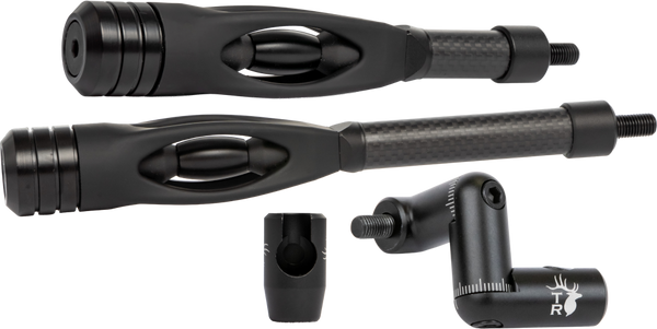 The all-new Trophy Ridge Seismic Stabilizer Kits are designed for bowhunters and target archers who demand superior balance, reduced vibration, and total control. Each kit includes two high-strength carbon fiber stabilizers available in 6" & 8", 8" & 10" or 10" & 12" length combos, providing rock-solid stability without unnecessary weight. Built-in weighted dampeners reduce shot noise and vibration, while each stabilizer can be fitted with up to four, 1-ounce weights (extra weights sold separately). With quick connect brackets for fast installation and removal, plus an included back bar mount and wrist sling for improved handling, these kits offer easy customization and steady performance when it matters most.