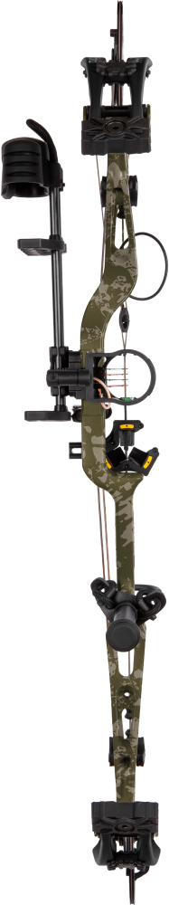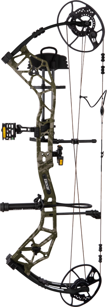 The new Paradigm RTH hunting bow from Bear Archery sets a whole new standard for ready to hunt bows. Featuring a new integrated Fatal 4 sight and the Integrate Mounting System Whisker Biscuit V arrow rest from Trophy Ridge; there has never been a more streamlined set-up from the factory. This hunting bow is powered by the ultra-efficient DHC cam system capable of speeds up to 333fps, while being adjustable from 27"-32" of draw length. To help you make every shot count, the Paradigm measures 33 inches axle-to-axle and sports a brace height of 6.5 inches to maximize forgiveness. New cable guard roller system and in riser dampeners give this bow high end features that are unmatched in its price range. Trophy Ridge Package includes: integrated 4-pin sight, IMS Whisker Biscuit V, 5-Spot quiver, stabilizer, peep sight, and D-loop.