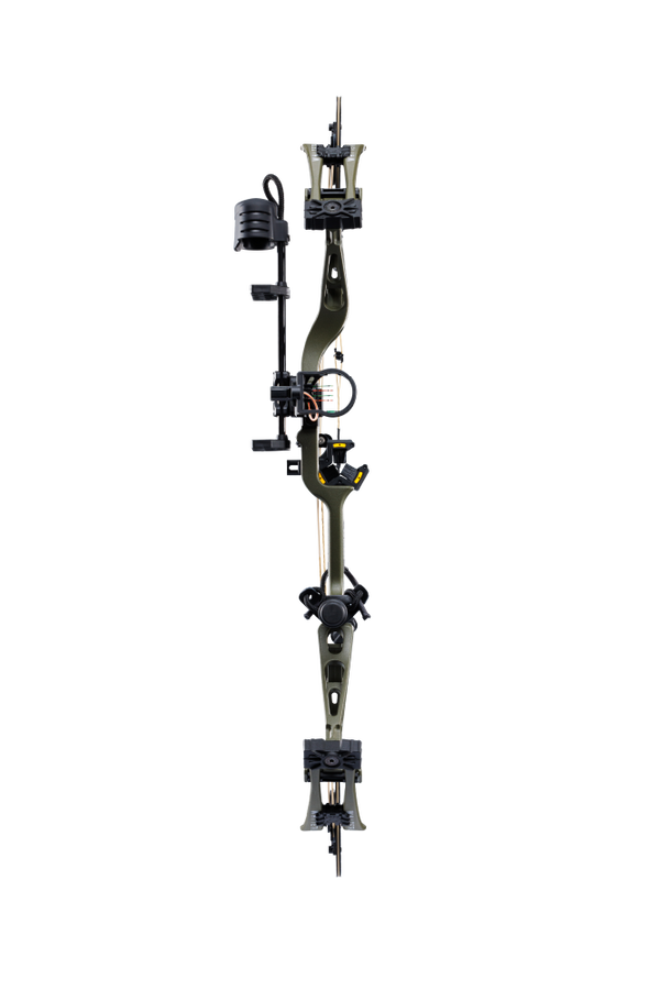 IMS® V-Biscuit rest, a Picatinny-mounted Fatal 4 pin sight, a 5 arrow quiver, a stabilizer, Tru peep sight, and wrist sling
