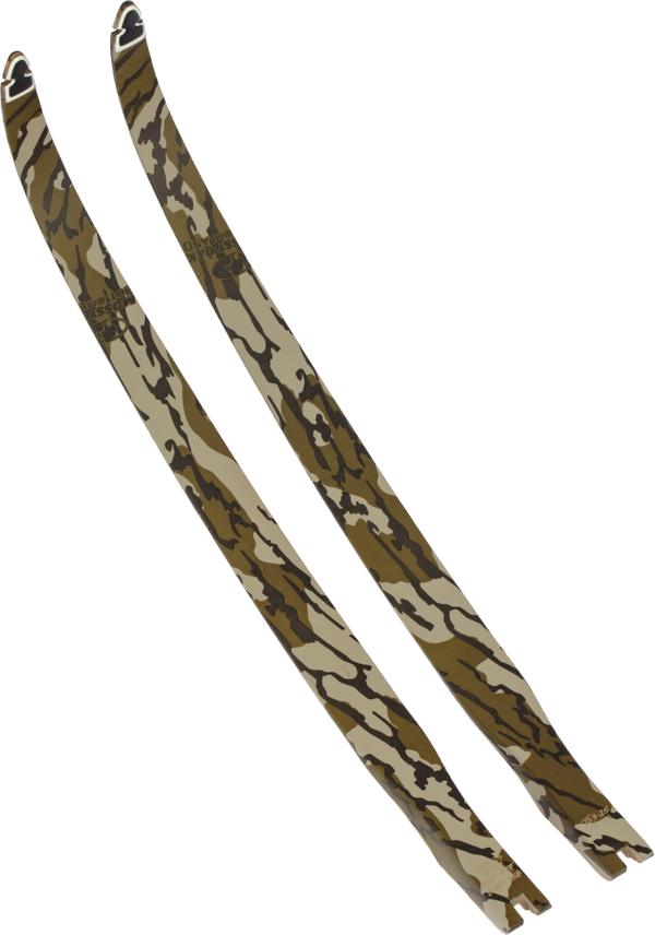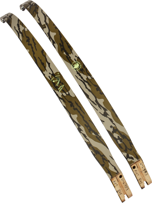Years ahead of their time, Fred Bear's Take Down Limbs brought the industry a new technology and superior performance. Today, these Take Down Limbs are now available in Fred Bear Camo and Mossy Oak Bottomland finishes. These Take Down Limbs are available in one length, #3 limbs. The #3 limbs will make a 60 bow on an A-Riser, a 62" bow on an Eichler Riser, and a 64 bow with a B-Riser.