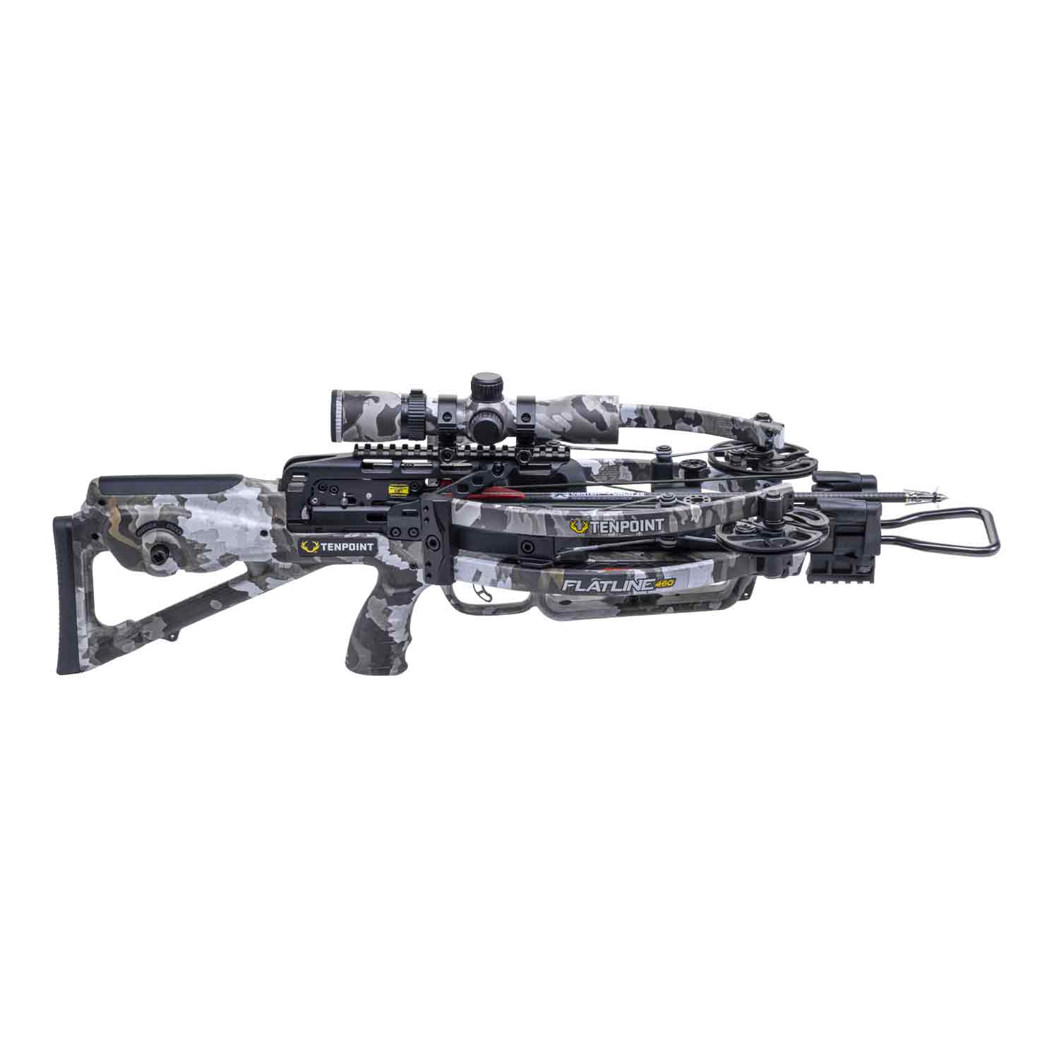 The Flatline 460R by TenPoint is a compact and powerful crossbow that is perfect for the hunter who wants to maximize their shooting opportunities while staying mobile in the field. Measuring only 26.5 inches long and 7.5 inches wide, this small package is capable of shooting at a blistering 460 feet per second. The included Rangemaster scope makes this crossbow deadly, and the new Scope Struts ensure that the scope is securely mounted to the crossbow. This combination of speed, accuracy, and compact design makes this Flatline 460R package a great ready-to-hunt option for any hunter.
