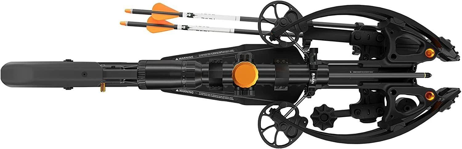 - Comes with tactical crossbow scope, scope level, quiver, 3 Premium .001 arrows with practice points, removable cocking handle